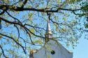 A város legszebb műemléki középülete a nagytemplom, más néven a Szent Márton plébániatemplom, Kunszentmárton szimbóluma. 1784 őszére készült el a késő barokk stílusú, belső méreteiben is jelentős nagyságú templom. A nagyszerű épület többek között Rabl Károly Jászkun kerületi kőműves mester keze munkáját is dicséri. Rabl Károly, gyöngyösi építőmester neve igencsak ismert és elismert ezen a vidéken. Az ő nevéhez fűződik a Debreceni Református nagytemplom építése végső munkáinak befejezése vagy például Törökszentmiklós és Kisújszállás református templomainak megépítése. Kunszentmárton katolikus nagytemploma azonban nemigen hasonlítható az egyszerűségre törekvő református templomok stílusához, a tornya nemcsak kecses, de osztott és díszített, ráadásul nem egysíkú, hanem homorú íves falakkal csatlakozik a hajóhoz, fölötte pedig gazdagon formázott sisak magasodik. A főbejárati ajtó fölötti díszek egyike könnyen felismerhető, hiszen az a Lehel kürtje, más néven a Jászkürt ereklyét ábrázolja, mi legalábbis így gondoljuk, az akkori községet ugyanis a török idők után a jászok és a kunok telepítették újra. A kunokra való tiszteletteljes emlékezésül pedig, mint sikerült kiderítenem, Kunország címere látható fentebb, a kétfarkú oroszlánnal vagy kutyával. Kétfarkú kutya? Ajjaj, ez már politika! Menjünk inkább be a templomba. Mentünk, de csak a szokásos rácsig jutottunk, onnan kukucskáltunk a főhajóba. Barokk, késő barokk, copf stílusú, amit messziről láttunk. Őszintén szólva, ebből a fajta barokkból nekünk ennyi elég is volt. Jobban esett a szép őszies napsütésben körbesétálni, kívülről csodálni Istennek eme házát.