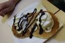 Mosolygós pincérlány fogadott minket, és kiválasztottuk az egyetlen helyet, ami le volt előzőleg foglalva. Így nagy duzzogva (dehogy) átültünk egy másik helyre, ami később kiderült, még előnyösebb is volt, mint amit eredetileg kinéztünk. A rendelést felvette a kedves, szőke lány és nemsoká meg is érkezett a kézműves, keserű mézsör (Harry Potter megirigyelné), és a házi, epres-bazsalikomos limonádé. Szerencsére nem tettek bele cukrot, így a tiszta gyümölcs-íz kavalkád érződött csak, persze azért még pár jég elfért volna benne. A mézsörhöz már egy picit a képzelőerőmet is elő kellett hívnom, hogy valóban megérezzem a méz-ízt, de mindenképpen minőségi, finom sör volt. A rendelt hamburgerekre ideálisnak mondható 20 percet vártunk, de addig sem tétlenkedtünk: felfedeztük a helyet. A dizájn kifejezetten tetszett: nagy tér, plafonról lógó raklapokon csücsülő neoncsövek, hatalmas, egész falat beterítő retro poszter, és mellette mókás képek. Na meg a különböző díjak és jócselekedetek bekeretezve és a hatalmas felirat, hogy bár gyorsétterem jellegű a hely, de bizony várni azt kell. A két pici klímát legszívesebben lecserélném néhány nagyobbra, mert a dolgukat nem igazán végezték, de mivel az ajtó nyitva maradt, így bejött a friss, esti levegő – és milyen szerencse, hogy pont oda ültünk végül. A mosdó pici, szerintem nem elég egy ekkora helyre, de ez persze egyéni vélemény. Azon felül, hogy a deszka törött volt, tisztaság fogadott, ezen azért még lenne mit csiszolni. A hamburgereket már a srác hozta ki, aki értette a hülye poénjainkat (pluszpont). Nos, amit vártunk, megkaptuk: a barátom iszonyatosan csípőset akart enni, én pedig különlegesen finomat. A hamburgerem omlós volt, sokféle ízű (helyes), a krumpli pedig mennyeien finom. A barátomé pedig az az igazi, kétszercsípős fajta. Desszertként chimichangát és palacsintát választottunk. A chimichanga nagyon ütött, a palacsinta meg hozta, amit kellett. Az árak nem vészesek, bár tény, hogy nem egy mindenestés kajálós hely, inkább az a különlegesebb alkalmakra – fajta. A kiszolgálással maximálisan elégedettek voltunk, az ízek pedig mindent vittek. W35: visszatérünk!