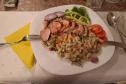 Míg ott várakoztunk a pizzánkra a konyhából csak úgy jöttek kifelé a jobbnál jobb tálak. . . . . . . de mindegy. A kitünő pizza kárpótolt bennünket . Kiváló alapanyagokkal , rendkívüli pizzát kaptunk. Mivel meg voltunk első alkalommal elégedve az étteremmel, másnap szép napsütéses idő volt. . . . . kiültünk a teraszra. . . . . . . . egy szép kirándulás után éhesen. A pincér nem volt túl kedves , de elfogadtuk. . . . Előételként egy sajt és sonkatálat rendeltünk ami nagyon finom , minőségi anyagokból. Drága volt , de megérte. Aztán: