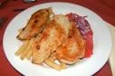 Az étterem tulajdonosa feljött köszönteni minket, mikor már nagyjából összegyűlt a társaság. Megkérdezte, hogy minden rendben van-e. A pincérünk diszkrét volt, nem jött állandóan, hogy kérünk-e valamit; de ahhoz elég gyakran feljött, hogy pótolhassa az italainkat. A vacsorát a megbeszélt időpontra tálalták. A többiek Casablanca-tálat rendeltek előzetesen, de én elég finnyás vagyok, ezért emailben "Könnyű, esti kísértést" rendeltem, csak hátszín helyett is csirkemellet kértem, és zöldsaláta helyett paradicsomsalátát. Nagyon megörültem, mikor hozták az enyémet, és láttam, hogy minden úgy módosult, ahogy kértem! :) Bőséges adag volt, és persze finom! A projektor jól működött, sok unokát nézhettünk meg. Jól be volt fűtve, kellemes volt a hőmérséklet. Jó kis összejövetel volt, nem háborgatott minket senki. Ajánlom mindenkinek ezt a családias, kellemes éttermet!