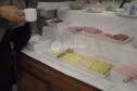 60 cm-re a földtől, ezt kértem is, hogy tegyék feljebb, nem sok sikert arattam ezzel, pedig szőke hosszú hajszálat is találtam a sajtokon. A fotón is látszik, a hölgy milyen testrésze ér a pulthoz. A poharas joghurtok felül voltak, így meg lehetett volna e két terméket cserélni, általában a csomagolt termékeket alulra rakják máshol. Ilyen a vajak, a csomagolt sajtok poharas joghurtok. Összességében jó volt, csendes hotel, bár vannak még hiányosságok. Érdemes itt kivenni szobát, mert központi helyen van, pár percre a Vártól, a buszmegálló is közel van.