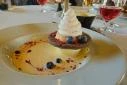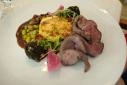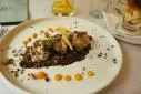 Hozzá szarvasgombás hab. Ha nem tudnám, hogy szarvasgombás, akkor ott tanakodnék, mi ez az íz. Húsleves: gyöngytyúkból, semmi extraság nincs benne, csak egy nagyon finom húsleves. Durbincs: a mártás adja azt a pici savanykás ízt, amit máshol a citrom facsargatásával érnek el. Szarvas: a hús omlós, a köret ropogós, a mártás pikáns. Rétes: ropogós a tésztája, nem elázott, nem kemény, a töltelék pont elég. Szóval minden pont olyan, amilyennek kell lenni, de nem érzem, hogy túl lenne bármi is gondolva.