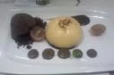 6 fős társasággal voltunk ott. A pincérek kiszolgálása elég flegmatikus. Nem túl kedvesnek,unottan jönnek hozzád, mikor kérdeztük, hogy mit ajánlana, arra sem tudott válaszolni. Nem én vagyon nagyon lehúzó, mindannyian rossz szájízzel jöttünk ki. Az ételeket hidegen vagy alig langyosan hozták ki. A lazac feketére sütve, a burgonya gombóc ízetlen valami, leves sótlan ízetlen. . A cézár saláta nagyon rossz volt, köze nincs az eredeti cézár recepthez. Valamilyen ciabatta jellegű kenyér szeletet tettek a tetejére, saláta levelek nagyon vastag, sűrű majonézes szószban. . A töltött cukkini főételként 1900 Ft-ért megnézhető a képemen milyen és mekkora! ! A burgonyapüré -rózsák olyan kiskanálnyi méretek a viszonyítás végett. Ami a negatív csúcs számomra somlóinak nevezett kreálmány. Értem én a design szakácsművészetet, de ha valami alapjaiban sem hasonlít egy híres ételre, akkor miért kell ugyanúgy hívni? Hívják tojáshabos + csokis gombócnak és akkor legalább nem csalódunk akkorát. A somlói szerintük 1 gombóc csoki fagyi (télen! ), és egy gombóccá formázott aszpikos tojáshab! Aki a somlóira gondolva ezt megkapja, elég nagyot fog csalódni, mint mi is.