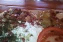 Ez volt a hétvégén a foglalkozás tárgya, amit először megingatott a szomszéd asztalnál látott Rántott húsos tál, gondolván, hogy jobb lett volna olyat rendelni. Látszott, hogy az adagok beállításakor inkább az éhes horgászra gondoltak, mintsem a manöken típusú látogatókra. De aztán megérkezett a rendelt harcsa is, és a kósza ötletet elfújta a szél. Ránézésre teljesen megfelelt a várakozásnak. A kóstolása megerősített , hogy mégis jól választottam, az ízek kavalkádja volt belefőzve Bátran merem állítani,hogy egy sokcsillagos étterem sem vallott volna vele szégyent,de velük ellentétben ez azért készült, hogy a megfáradt ember jól lakjon vele, és be is teljesítette ezt a küldetést.