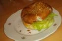 ] oldalán található leírás szerint ,,egy szelet rántott csirkemell, egy szelet olvadt cheddar sajt, ropogós bacon, paradicsomkarika, házi BBQ szósz, sajtszósz pirított buciban" -t tartalmaz. Nos, a várva várt 1. 300 Ft-os burger helyett illusztrálnám