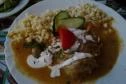 Csak ajánlani tudom a sváb marhahúslevest, rendkívül jól esett ebben a nyirkos, hideg időben. Főételnek a brémai muzsikusok kedvencét választottam (csülökkel, sonkával, zöldségekkel töltött burgonya gombóc fehér párolt káposztával). Azt sajnos nem figyeltem, hogy nem édes a párolt káposzta, én inkább azt szeretem, de ennek ellenére teljesen elégedett voltam. Párom a Haxn Gröstl-t kóstolta meg, ami szintén nagyon finom volt. Az adagok nagyon, jól laknak vele még a nagyétkűek is. :)