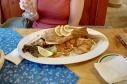 Magam egy harcsapaprikás, és a mellé helyezett túróscsuszába csaptam bele villámmal, míg kislányunk egy Bud Spencer - nyi adag Bolognai - spagettival mérkőzött. A pincér és a többi alkalomazott végig készséges, derűs és előzékeny volt. Külön kiemelném, hogy a rántott fogas gluténmentes bundában töltötte testi léte utolsó pillanatait, erre ma még kevés étterem ügyel, itt ez sem volt gond.