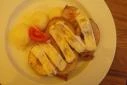 Keresztelő utáni ebédre előre foglaltunk asztalt. A családot szépen gyöngyökkel stb. . gyönyörűen terített asztal várta. Kb 10en voltunk, mindenki mást rendelt, ízlése szerint választott az igényesen összeállított étlapról. Az ételek időben melegen szépen tálalva érkeztek. Nagyon ízletesek voltak a családtagok mindannyian maximálisan elégedettek voltak.