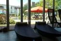 Úgy simul a fürdőterület és a medencék közelébe, hogy minden ott töltött percben a wellnessbe vágyom, a víz és a pára látványa elbódít, a csobogás indulásra csábít! Az épület belső oldala a strandra nyílik, a külső homlokzat a susogó fákkal árnyékolt ligetre néz, a parkoló és a fürdőbejárat mellett. . . A szálloda tulajdonosa épp a fotocellás bejáratnál állt, segítőkészen mutatva a bejelentkezési pult felé, ahol hatalmas üvegtálban hamvas-hűtött friss barackpiramis incselkedett az érkezőkkel. Ott-tartózkodásunk alatt szívesen szolgált információval, szívélyes szavakkal, bármikor bármit kérdeztünk. . . S miért éppen Barack hotel ? Ezen a területen- még a mélységi kútfúrásokat megelőző időkben- híresen finom gyümölcsöt adó őszibarackos volt! Azóta a föld gyógyvízzel, wellnessvilággal, csodás vendéglátással kényezteti az itt pihenő vendégeket! A szálloda épülete izgalmas, sokfunkciós, orvosi és gyógyító szolgáltatásokat is biztosít, akadálymentesített! A kerékpárkölcsönzés és tárolás itt természetes! Az aktuális napi és heti programajánlót az ínycsiklandó reggelinél az asztalon találom, a napi sajtó a kávém mellett vár! Ennyi kényeztetés után a közönségnyitás előtt a hajnali óráktól 9-ig a szállóvendégeké a termálfürdő! Napközben ezer vízi és szaunakaland kényeztet, este a remek vacsorák és változatos séták. . . S ha még lenne erőnlét ennyi pihenés után,kerékpártúrát nem szabad kihagyni! Minden tekintetben csúcsszolgáltatást nyújt a Barack Hotel!