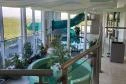 A szobában a műbör szék totál szét van repedve. Ami igencsak kritikán aluli volt, a fürdőben a vízkőlerakodás. Hát egy hungest hotel láncolattól ez ügyben többet vártam. Mintha nem ismernék a vízkő tisztítószert. Van amit már az sem orvosol, de azért ennél többet lehet tenni. Az étterem részben mint a heringek úgy vacsiztunk, a pincéreknek volt dolguk bőven, ezért nem is értek rá kedveskedni a vendéggel, sőt egyik másik nem éppen barátságos stílusban dolgozott. A wellnes részt élveztük, főleg az 5 éves vizicsibénk, persze onnan és az étterem reszből gyönyörű a kilátás, ezért szerettünk volna itt megszállni. Összességében szép s jó volt, de nekem az volt az érzésem, hogy inkább a mennyiség számít, mint a minőség. Fotókat csatolok, amiről beszéltem, kitakarított fürdő fotói, még nem használtuk. És a 3. emeleti panoráma.