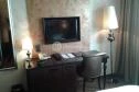 A szoba dizájnos volt, csak nagyon sötét a vörös tapéták és a sötétbarna padló miatt, emellett ez utóbbi sajnos poros volt. Sajnos a komfort érzetemet a hűtő, szobatelefon, normális poharak hiánya is növelte, plusz a frászt hozta rám az egyik pillanatban magától lekapcsolódó világítás, kikapcsolódott Tv, lezáródó redőny. :D