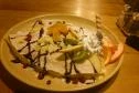 Felszolgálás tekintetében érdekes módon az utóbbi 2 évben nem volt problémánk. Kedvesek voltak, figyelmesek a magyarokkal is. Nem igyekeztek mindenáron borravalót kicsikarni, mint korábban, amikor szinte nem akartak visszaadni 10 ezresekből. Korábban fémtartóba tetették a pénzt, elmentek és várták a távozást. Volt, hogy döbbenten forgolódtunk, kerestük őket mindenfele, mert 4 ezer forintokat csak nem akar az ember borravalónak hagyni. Elérhetetlenek voltak az urna kihozatala után. Ha nem rendeltünk eleget, v elég drágát, pofákat vágtak, lehervadt az arcukról az erőltetett mosoly, lekezelőek voltak régen a magyarokkal. Másodszorra már nem hoztak ajándék előételt stb. . . Tavaly már jobb volt a helyzet, igaz akkor csak egyetlen fiatal srác tartózkodott bent, és ijedten közölte, hogy az egész személyzet lelépett valami szomszédos rendezvényre, de azért össze tudnak nekünk, mint egyetlen vendégeknek dobni valamit. Rendkívül kedves, készséges és barátságos volt. Ez a tavalyi volt az első középkori éttermes jó tapasztalatunk Eger és Siófok középkori éttermeiben. Most a minket figyelő pincér olyan sokszor ment el mellettünk, és járt fel-alá, hogy az már zavaró volt. Ill. az állandó figyelés is. Kaptunk előkét, fel is akarták kötni, szó nélkül kaptunk ajándék előételt, nem várták meg először, milyen értékben rendelünk. Igaz csak 2 aprócska pirítós volt a jókora adaghoz, és nem sikerült még kenyeret kérni. A nói és férfi felszolgálók is barátságosak, és készségesek voltak voltak. Nem volt megkülönböztetés (mert nem ffi-val mentünk, hanem csak nők, vagy mert nem 10ezrekért rendelő külföldiek voltunk, vagy mert csak ketten mentünk. ) A kardon feltálalt 2 személyest kértük, mint tavaly is. Szinte 4 emberes mennyiség volt, pedig mi is sokat tudunk enni. Még hús is maradt, pedig éhesen mentünk oda. Mintha zárás előtt rápakoltak volna minden konyhai maradékot. :) A pincér kedvesen és nagyon lelkesen ajánlotta, magyarázott, mi micsoda, bár mindenképp azt akartunk enni. Az étel viszont összetételre, és minőségre kicsit csalódás volt. A negatívum, hogy bár grill, stb dolgok voltak a tálon, elvileg csak a nevük volt az, nem érzett a grill/kemencés/füstös íz. Rengeteg héjában főtt krumplit kaptunk, négybe bevágva, kevés vaj belecsorgatva. De sima íztelen főtt krumplik voltak, nem piros/fonnyadt kemencés/sütős sültek. Így fura volt. Más krumpli köretet nem kaptunk (hasáb, chips, cikkekre vágott, sült stb). Ezt találtam a legnagyobb negatívumnak. Volt a kardon parázs felett sült nagy mennyiségű hagyma, alma stb. De sületlen mindegyik, és a parázs felett sült jelleg sem érződött. Héj alatt teljesen nyers. . . . A köret nagy részét a rengeteg főtt krumpli, és sületlen hagyma/alma alkotta. Mivel az volt a legnagyobb mennyiségben, krumplit vettem ki, hagymát, és szalonna szeletet először. Meg is jegyeztem, hogy olyan mint egy "régi szegényes otthoni" főtt krumpli-szalonna-nyers hagyma vacsora 8000-ért :))). A savanyúság túlnyomó részét a káposzta alkotta. Változatosabb is lehetett volna, úgy ahogy a krumpli, vagy egyáltalán a köret is. A krumplimennyiséget 3 fele vehetik hasáb-parázson sült/fött/chips pl és akkor talán azt mondtam volna az egész tálra, hogy "HŰHA". :) Egerben pl ehhez hasonlóan, változatosan adják a 2 személyes, vegyes tálakat a középkoriban. A húsok finomak voltak. A borda nagyon zsíros. . . Röviden, a tavalyi kardos 2 személyes jobb volt, és akkor még kukorica is volt rajt. :( A kiszolgálás viszont javult. Sőt. Élőzenét, vagy "műsort" sajnos sosem tudtunk még itt kifogni, most sem.