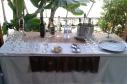 A bejáratnál ki volt írva a 2-féle menü,gondoltuk,hogy az időnk behatároltsága miatt mindenképp azt eszünk,de igazából nem is nagyon volt időnk választani,mert ahogy beléptünk a kiszolgáló úr (gondolom a tulajdonos) már szinte kiabált is ránk,hogy mit adhatok,mit adhatok,lehetőségem sem volt a sok egyéb kiírt étel nevét és árát elolvasni,igaz,gondolom,ő megszokta ezt a pörgést,a hely is tele volt,engem mégis zavart,hogy szinte kiabált,mindenki azt hallgatta (mivel borzasztó kicsi a hely),hogy hogyan poénkodik,kicsit már-már tolakodóan. . . Szóval az étel,amit végül kiválasztottunk,én egy menüt 950 ft-ért,ár-érték-arányban nagyon jó volt,mutatom majd képen,zöldborsóleves és rántott gomba és karfiol,a rántottak olyan bőségesek voltak,hogy el is kellett csomagoltatnom. A férjem csülkös bablevest választott csak,jó íze volt szerinte és elégséges is. Kértünk még palacsintát is,ismét a kiszolgáló jó üzleti érzékének köszönhetően,hiszen szinte rám kiabált,hogy a menühöz milyen palacsinta lesz és ez elég átverés-ízű,hiszen a menühöz nem is járt palacsinta,de én meg rávágtam,hogy túrós és mákos,ő meg már rakta is,bár előtte rákérdezett,hogy 5-5 db? ? Én meg mondtam,hogy dehogy is,2-2 bőven elég,azt szintén magunkkal vittük,meg sem bírtuk enni,viszont az ő jó üzleti érzékének köszönhetően kb. 160 forint/db x 4-el bővítettük a számlánkat! A túrós rendben volt,finom volt,a mákosban kissé avasnak éreztem a mákot és nem is volt elég édes. Van Facebook-oldaluk és azon megjelölve egy honlap. Na már most a honlapon szereplő rengeteg ételnek még hírét-hamvát sem láttam,bár valószínűleg csak időm nem volt olvasgatni,hiszen olyan gyorsan kellett kérni. . . Ittam egy hideg bodzaszörpöt,az rendben volt,de az is inkább olyan erőszakos volt,hogy inni mit kérünk? A fiúk málnaszörpöt szoktak kérni,a lányok bodzát! Erre automatikusan rávágtam a bodzát. . . Bár előtte szerettem volna egy alkoholmentes ízesített sört kérni,mert megláttam a plakátját a falon,de az úr közölte,hogy azt csak szemben kapok a benzinkúton,mert itt csak a plakát van,azzal is csak a falon lévő lyukat takarják el - hogy viccelt-e,valószínűleg sosem tudom meg. . . mindenesetre rajtam nevetett megint csak a tisztelt telt ház. . . Kint ettünk,nem minden asztal fölött van napernyő,a tányérokra ráférne már egy csere,szinte mindegyik csorba volt,a só-borstartók sem voltak valami tiszták. . . de gondolom,nagyon sokba kerülne kicserélni az étkészletet például. . Összességében ha újra arra lenne dolgunk,biztosan bemennénk,DE nem hagynám magamat már "terrorizálni",elolvasnék mindent,úgy döntenék,stb. stb. ,akár így másokat előre engedve,de nem baj. Az látszik,hogy sokan járnak be,többségében visszatérő vendégek,ebédidejüket töltő környékbeli dolgozók például. Azért egy újabb esélyt adnék,a bőséges ebéd miatt.