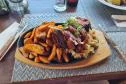 Néhány hete előfordult velem, hogy telt házas időszakban vendégeimmel 45 perc után kaptuk meg, az egyébként kifogástalan ételt. Legutóbb bajor füstölt csülköt rendeltem steak burgonyával és bajorkáposztával. Az igazán bőséges adagot most gyorsabban kihozták és a tálalás - ahogy a fotó is mutatja - kellően látványos volt. Látványos, de nem praktikus! A viszonylag kis tálban felhalmozott steakburgonya tetejére elhelyezett ropogós, keményre sült bürkélyű csülök darabokat ugyanis nem lehetett a burgonya tetején elvágni, csak az asztalon lévő szerviztányéron tudtam őket nagy nehezen darabolni. A steakburgonya köret mennyisége számomra kicsit túlzott volt, ahogy a fűszerezése is, bár ez ízlés dolga. Az ár-érték arányt elfogadhatónak tartom. A helyet kipróbálásra mindenképpen ajánlom.