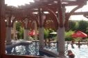 Nem is nagyon vágytunk el, hiszen minden adott volt a helyszínen: 2 gyógyvizes medence, kültéri- beltéri hidegvizesmedence, napozóágyak, büfé, gőzkabin. . . A hotel körül gyönyörű park van szökőkúttal. A mi szobánk pont erre nézett, de éjszakára kikapcsolták, így a víz csobogása sem zavart minket. Viszont a hatalmas fák miatt nem tűzött be a nap a szobába. Nem kértünk klímát, de nem is volt rá szükségünk (volt vendég aki nem ilyen fekvésű szobát kapott, ők panaszkodtak). Nem minden szobájuk légkondicionált! Ha valaki olyan szobát szeretne már a foglalásnál jelezze! A félpanziós ellátás bőséges volt, ha valaki mégis megéhezne, az a kinti medence melletti büfében tipikus strand ételek közül (palacsinta, sültkrumpli stb. )válogathat. Mi teljesen elégedettek voltunk mindennel. Talán azt még nem árt tudni, hogy a hotel kicsit eldugva a központtól távolabb van. A honlap-juk azt írja, hogy 500m a fürdőtől. Ez szerintünk több.