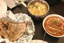 Elmondtam, hogy asztalt foglaltunk, 2 főre, név. "Oh igen, üljenek le" - hangzott a válasz, és közben a lenti szintre mutatott, és a nevemet még csak el sem kezdte keresni a foglalások között. Mondtam, hogy a fenti szinte foglaltunk, a galériára. Oh, igen, igen, tessék - ezzel felinvitált minket a lépcsőn. Miután végig mustráltuk az étlapot, meg hánytuk-vetettük a dolgokat, rendelni szerettünk volna. Jött is a pincérhölgy, akitől azért pár kérdésünk lett volna az ételekkel kapcsolatban, de sajnos arra a kérdésre, hogy a főételekhez jár-e köret? - nem tudott válaszolni, mivel nem ismerte a "köret" szót. Mindegy, rendeltünk inkább mellé köretet, nem bíztuk a véletlenre. Előételt is ettünk, ami annyiból állt, hogy egy pirított indiai lapos kenyérre rászórtak egy kis zöldséget, némi indiai fűszert, vajat és tádám. De az egyszerűsége ellenére ízlett. Kissé ezen a ponton megijedtem, hogy a kaják is ilyen egyszerűek lesznek. De a félelmem alaptalannak bizonyult. Én csirke tikka masalat kértem, illatos basmati rizzsel, házi byriani fűszerekkel, és persze a mellé a kihagyhatatlan dupla réteges sült indiai kenyeret. Belekóstoltam és ahww. Isteni! Az ízek harmonizáltak, a sült kenyér a masala szószhoz mennyei volt, és még az sem zavart, hogy a csirkemell darabok nagyobbak voltak, mint amekkorát én megszoktam egy ilyen szószos ételben. Jól megvoltak sülve, egy szavam sem lehet. Pincérünk egyszer odarebbent hozzánk megkérdezni, hogy minden rendben van-e? Mi maszatos kézzel és szájjal mutattuk, hogy ilyen jó indiai kaját még nem ettünk! - ezt láthatóan értette majd mosolyogva távozott. A hely tisztaságával nem volt gond, a berendezés idézi a várt hangulatot. Biztos, hogy visszatérek még ide!