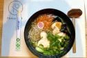 Oké, fa merőkanál - téged választalak! De hál istennek, kicsit odébb találtam villát is, melyre azért szükség is volt, mint utóbb kiderült. Körülbelül 4-5 perc múlva már hozták is a leveseket. Mind a ketten chikin levest kértünk, melyben van csirkehús, tojás, szezonális zöldség és fafülgomba. Elképzeltem egy ízt, és a leves pont olyan volt. Első alkalom. Pont olyan. A főtt csirkehús valamiért engem a menzás beazonosítatlan főzelék mellé adott húsra emlékeztetett. A tészta finom volt, a zöldségek is. A tojás is, ez utóbbi kevés. Fél tojás. A fafülgombának kerestem az ízét, de a furcsa állagon kívül mást nem találtam. Az ételt felakartam dobni némi chili pehellyel, de ettől csak csípős lett, és még inkább semmilyen. Rendeltünk hozzá még káposztás gyozát, ami mondjuk finom volt, de vélhetően csak azért, mert alapból szeretem a káposztás ételeket. Bár itt megjegyezném, hogy az elfogyasztásánál érdemes körültekintőnek lennünk, mert miután ráharapunk, egy jó adag olaj lövell ki belőle, szerencsés esetben a tányérunkra. Szeretem a leveseket, ezért is vártam, hogy itt egyek. És valahol reméltem, hogy a leves többet nyújt annál, mint amilyennek kinéz. De nem. Pont az. Egy leves, telirakva zöldségekkel, főtt menzás hússal, és tojással. Engem nem győzött meg. De ugye kinek a pap, kinek a ramenka.