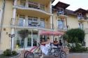 A földszinten napközben még zajlott valamilyen munkálat, ami bizony zajjal járt. Ez zavarhatta azokat, akik ebéd utáni pihenőt igényelnek. Mi ezt kihagytuk ugyan, de azért szót érdemel, mert a két-három hónapos kényszerű leállás alatt befejezhették volna. A hajóállomás közel van, áthajóztunk Tihanyba, kár lett volna kihagyni! A szomszédos Karolina cukrászda-kávézóban esténként élő zene van, nyitott erkélyajtónál ez bizony hangos. . . szerencsére 10-kor vége. Szeretem a jó zenét, de a hangerő lehetne kisebb. Az étterem kiváló, sajnos a pandémia miatt kissé körülményes, mivel sorbanállás van a kiszolgáló személyzetnél a plexi mögé rejtett étel-választéknál. Minden elismerésem a személyzet helytállásáért! Szerencsénkre még nagyon kevesen voltunk, így nem okozott tumultust, de mi lesz a főszezonban? Összességében mi nagyon jól éreztük magunkat!