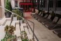 Udvarias, figyelmes személyzet, tisztaság, kényelem, szép park, nyitott terasz, csendes és nyugodt környék, kényelmes biztonságos parkolás