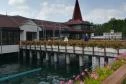 Ja, és számolni kell az oroszok gátlástalan nyomulásával, ami fölöttébb bosszantó és irritáló. A park, gyönyörű, gondozott, jó ötlet, hogy van külön gyerekeknek szóló fürdési lehetőség is. Igaz, sokan a tóba viszik be őket, ami szerintem egyrészt nagy felelőtlenség, másrészt engem a frász kerülgetne, hogy a gyerek kicsúszik az úszógumiból. Nem is értem, hogy engedhetik be őket az úszómesterek. Bár ők jól elvoltak a telefon nyomogatásával. Sőt, azon is meglepődtem, hogy tudomásom szerint csak karikával, úszógumival lehet bemenni a tóba. Ennek ellenére rengetegen csak úgy úszkáltak. A víz hőmérsékletén meglepődtem, majdhogynem langyos volt, úgy kellett keresni a melegebb buzgárokat. Aztán rájöttünk, hogy belül melegebb a víz, mert valahogy ilyen műanyag ajtókkal fel van fogva, bent van tartva. Ott viszont rengetegen voltak, hangoskodás, nyüzsgés és kajaszag volt. (Nem is értem, miért kell óbégatni egy olyan helyen, ahol nyugalomra, pihenésre, gyógyulásra vágyik az ember? ) Ami viszont nagyon tetszett, a hátmasszírozó megoldás, hogy a tumultus elkerülése miatt csengőszó jelzi, mikor kell tovább haladni a következő fúvókáig. Mindenki békésen, türelmesen várt a sorára, és mikor a végére értek, mentek tovább úszkálni. Ezt máshol is be lehetne vezetni, mert tényleg sok ember arcátlanul fél órákat tölt egy-egy ilyen élmény előtt. A mosdók koszosak, áll bennük a víz (öltöző dettó). Amit még fontos megemlíteni: ha nem sikerül elhagyni a fürdőt a jegy lejárta előtt, percenként 30 forintot kell ráfizetni. Nekünk sikerült 5 perccel korábban kimennünk. A víz egyébként érezhetően jó hatással volt az ízületünkre, jó lenne többet idejárni.
