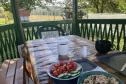 Az étkezéseket a szaletli árnyékában ejtettük meg. Emellett az infraszauna forrósága segített igazán a felfrissülésben, tisztulásban. De sorolhatnám a konyhakert finomságait, amit szedhettünk, vagy az üdvözlő pálinkát, almáspitét, amit boldogan fogadtunk. Áprilisban még fűteni kellett, de a cserépkályha, vaskályha, vagy a sparhelt melege olyan hangulatot áraszt, amit máshol nem tudunk átérezni. A környéken bőven akad kirándulóhely. Zalaegerszeg vidéki városként is megfogott, minden megtalálható, mégis mások az emberek, mint Pest környékén. A kis ház tiszta, rendezett, az udvar tavasszal virágos rét, bográcsozás, grillezés, kemencében sütés lehetősége tűzifa használattal rendelkezésre áll. A kedves tulajdonosok és a plusz dolgok, amikkel máshol nem találkoztunk, mind hozzájárult, hogy ismét visszatérjünk és tervezzük a következő látogatást is.