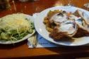 Udvarias volt, de nem ajánlott semmit sem ételben sem italban, kihozta az étlapot és már sarkon fordult el is tűnt. Az italrendelésünk gyorsan megérkezett, a rendelt bor is az a minőség volt, ami az itallapon szerepelt, majd a vacsorára kb. 15-20 percet kellett várni. Az asztal tiszta volt, és az evőeszközök, poharak is hibátlanok voltak. Az étel hatalmas adag volt, friss és gusztusos, nagyon finom. Elcsodálkoztunk mennyire nagy a választék, de ez talán kicsit túlzás is, mert így azért bizonyos ételeket kikerültünk és a frissensültek közül választottunk. Elégedetten, jóllakottan távoztunk. Köszönjük.