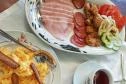 Bent hangulatos modernes-kockás abroszos kisasztalok, kint kényelmes nagy faasztalok voltak. Amíg várakoztunk (egyszer sem kellett sokat! ), végigböngésztük az elismerő okleveleket a falakon. Finomak, háziasak voltak a fogások és bőségesek az adagok. Mi is jó étvágyúak vagyunk, de láttuk, hogy a helyiek is elégedettek voltak az adagokkal. Mindennap rengetegen ettek ott délidőben, mégis gyors volt a kiszolgálás. ( Az is jó jelnek véltük, hogy a pulton hosszan sorakoztak a kiszállításra váró adagok. ) Sehol nem találtuk a mirelit nyomát, láthatóan minden frissen és friss zöldségből készült. Nagyon megérte menüt választani, igazán kedvező volt az ára, és a palócleves mindent vitt! Frissen is készítenek ételt, szűkebb ugyan a választék, de például klasszikus rántott hús, halászlé, babgulyás és vagy tízféle hamburger is kérhető, kiváló ár-érték aránnyal. Ami különösen tetszett, hogy a tulajdonos szinte mindenkivel váltott pár szót, látszott, hogy őszintén érdekli, hogy mindenki jól érezze magát, és elégedetten távozzon. Egy utolsó plusz jó pont: a mosdó patyolattiszta.