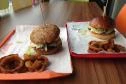 A kiszolgálás nem volt lenyűgöző, még az átlagos gyorskajálda futószalag-színvonalát sem nagyon ütötte meg, mert a tetovált rendelésfelvevő lány elég kedvetlenül válaszolgatott, és még véletlenül sem mosolyodott volna el, de mondjuk nem is flörtölni mentünk, szóval ez talán nem annyira fontos. Az étlap egyszerű és átlátható: burgert és hot-dogot lehet enni különböző méretekben, és ha jól emlékszem, köretből is csak két fajta van, sült krumpli és sült hagyma. Mi óriásburgert ettünk (ez húsz deka húst jelent, de lehet ebből duplát is kérni), teljesen magunk választhattuk meg, hogy milyen állatból készüljön, és mi menjen bele feltétnek; alapból zsömle, húspogácsa, saláta, paradicsom, uborka, hagyma és szósz jár hozzá - de vannak ilyen érdekességek is a listán, hogy kéksajt meg olivabogyó. Az én zsömlém teljes kiörlésű lisztből készült hagymás változat volt (isteni! ), a hús fűszerezése nagyon finom volt, a hozzávalókat mind nagyon bőségesen mérték; a párom nem járt ennyire jól, az ő húsa egy kicsit elégett, és a szószból is elég kevés jutott neki. A sült hagyma köretünk rendben volt, bár a panír egy kicsit vastagra sikeredett rajta. Innivaló fronton a klasszikus szénsavas üdítőkön kívül vannak mindenféle érdekes gyömölcslevek is, amikkel máshol még nem találkoztam. Mindent összevetve tényleg kiemelkedően jó volt, és nagyon-nagyon friss, épp eléggé meggyőzött ahhoz, hogy még a héten visszatérjünk kipróbálni a hot-dogot is. Az adagot most már óvatosabban kezelem majd, mert az óriás változat ha-tal-mas volt, még úgy is simán kifogott rajtam, hogy konkrétan korgó gyomorral ültem be.